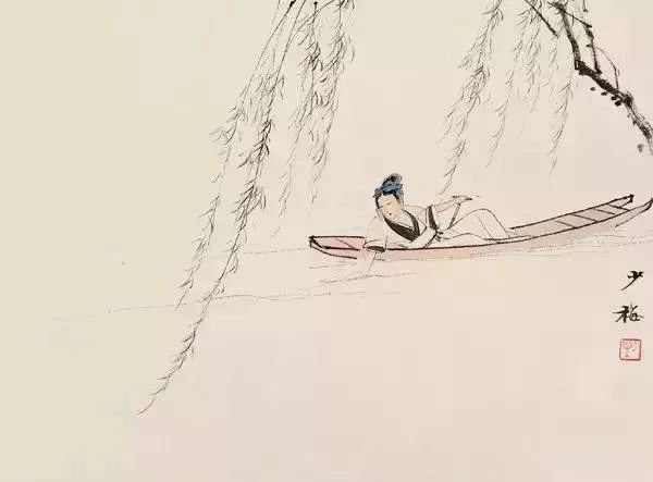 在意境营造上,陈少梅的小品常以高士、渔舟、亭台等元素为点睛之笔,将自然山水与人文精神融为一体。《柳荫行舟图》中,万叠春波与一叶扁舟形成对比,题款“万叠春波摇柳皱,一枝柔橹荡花圆”更以诗意点化画面,使观者仿佛置身于暮春时节的江南水乡,听见橹声欸乃,感受风拂柳浪的闲适。这种“诗中有画,画中有诗”的境界,既延续了宋代院体“可行可望可游可居”的传统,又暗合文人画“逸笔草草,聊写胸中逸气”的审美追求。